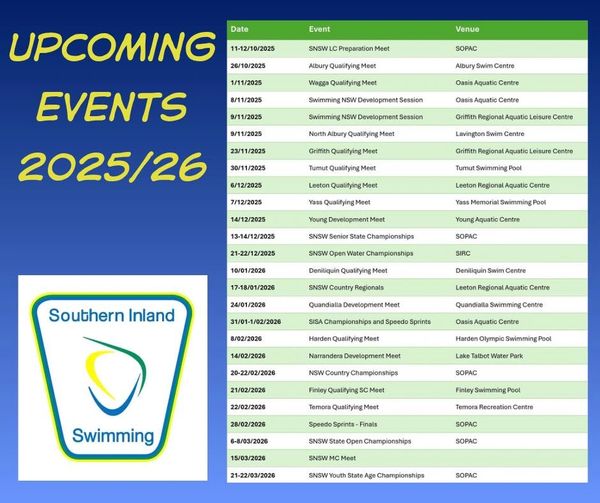 Entries are $8 per event and are now open on Swim Central and will close on Monday 3rd November at 12 pm.